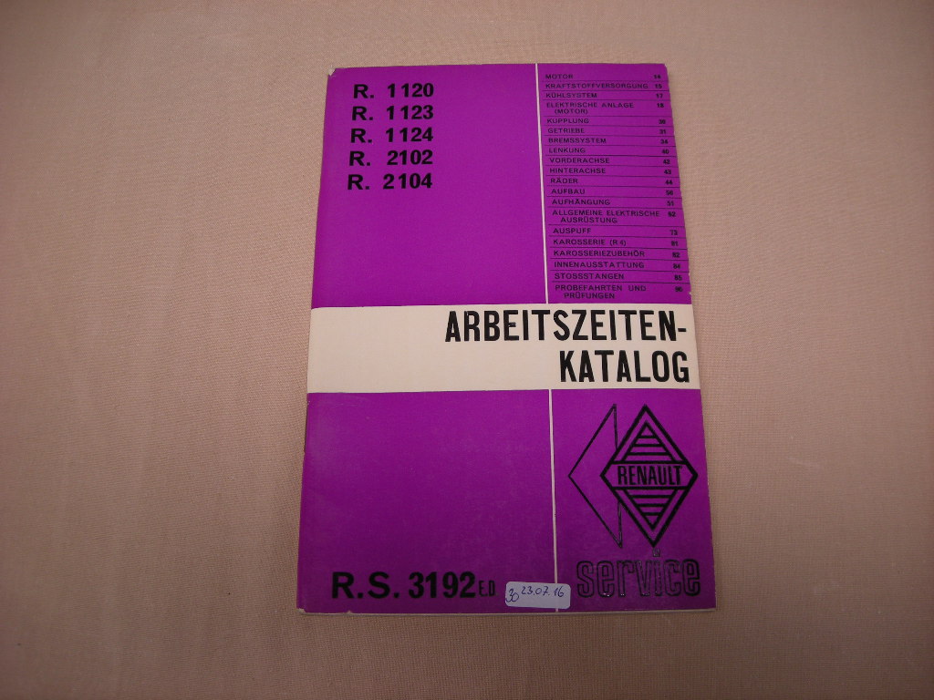 Arbeitszeitenkatalog für Renault, guter Zustand, 61 Seiten, von 1962!