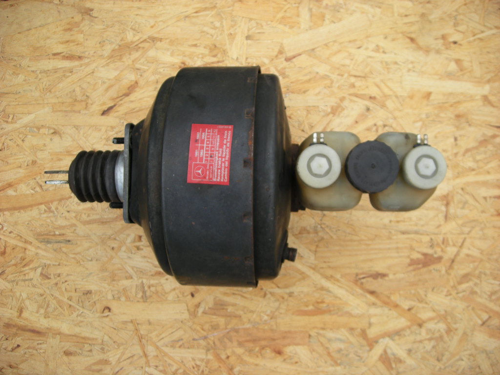 Gebrauchter Bremskraftverstärker mit Hauptbremszylinder für Mercedes R/C107. Der Hauptbremszylinder ist ein Verschleißteil und deshalb kann keine Garantie übernommen werden. Ausgebaut wurde er bei einem 450SLC mit erst 130000 km. Er müsste auch bei den Modellen W123, W116, W114/115 passen.