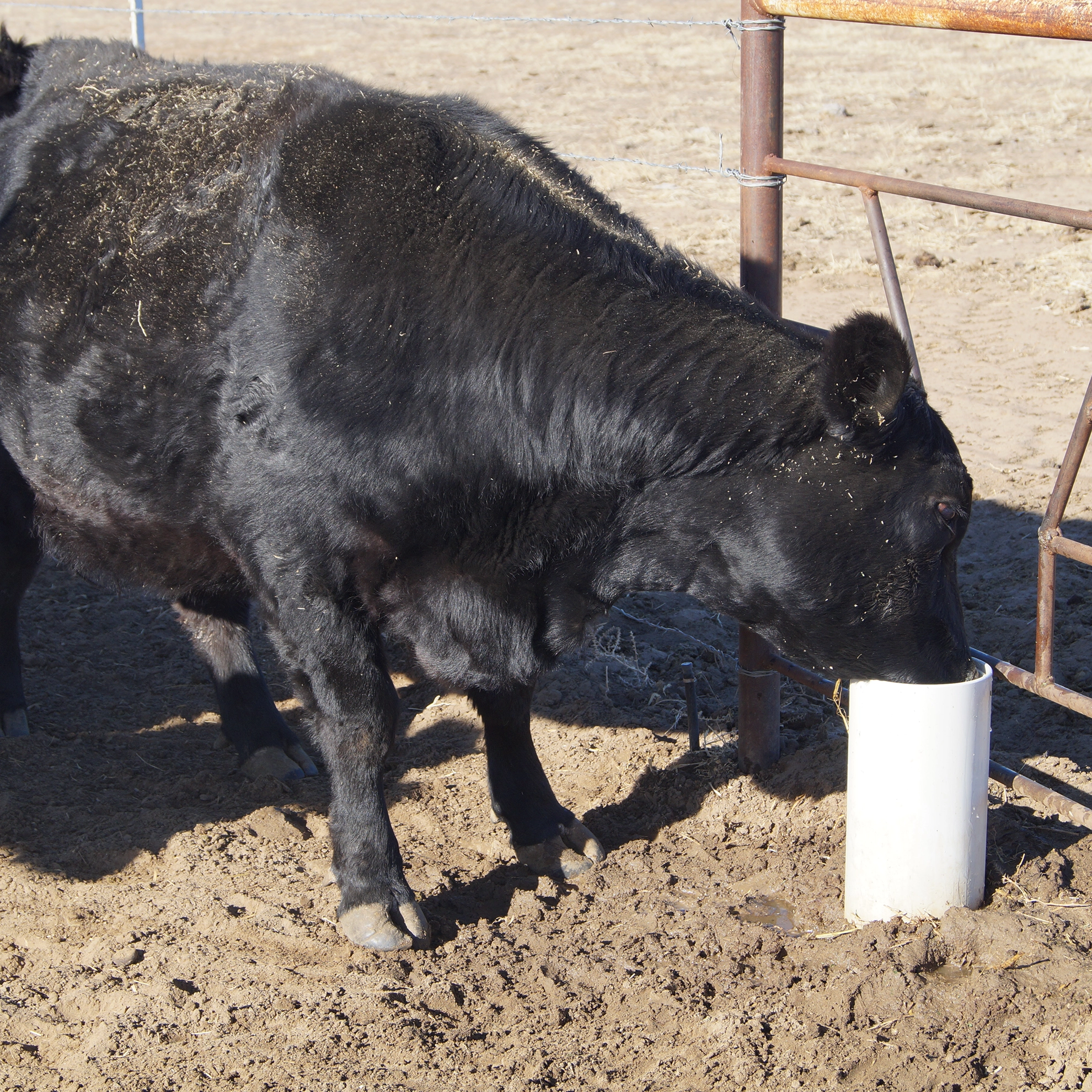 Les bovins poussent la languette de pression dans l’abreuvoir, une vanne s’ouvre et distribue de l’eau fraîche de la conduite d’eau dans l’abreuvoir.