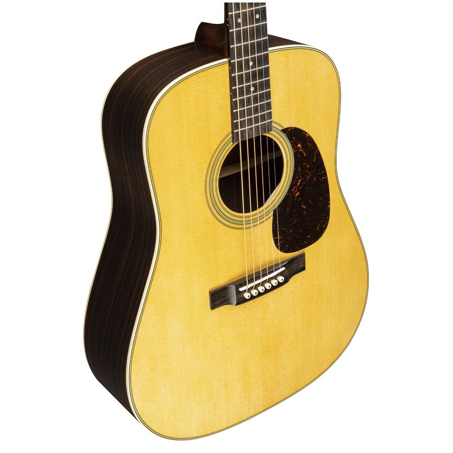 Die Martin D-28 ist der Inbegriff des Arbeitspferdes von Musiklegenden wie Hank Williams, den Beatles, Johnny Cash, Neil Young, Bob Dylan und vielen anderen. Das ist keine Überraschung, denn die D-28 ist aus ostindischem Palisander gefertigt, der sehr resonant ist und tiefe Bässe und reiche Obertöne bietet. Sie ist eine gut ausbalancierte Gitarre für alle Spielweisen, die Ausstattung kombiniert Vintage-Elemente wie offene Mechaniken, eine Decke im warmen Vintage-Look, antik-weiße Akzente und ein Schildpatt-Schlagbrett mit einem modernen Halsprofil für ein schnelles, komfortables Spielerlebnis.