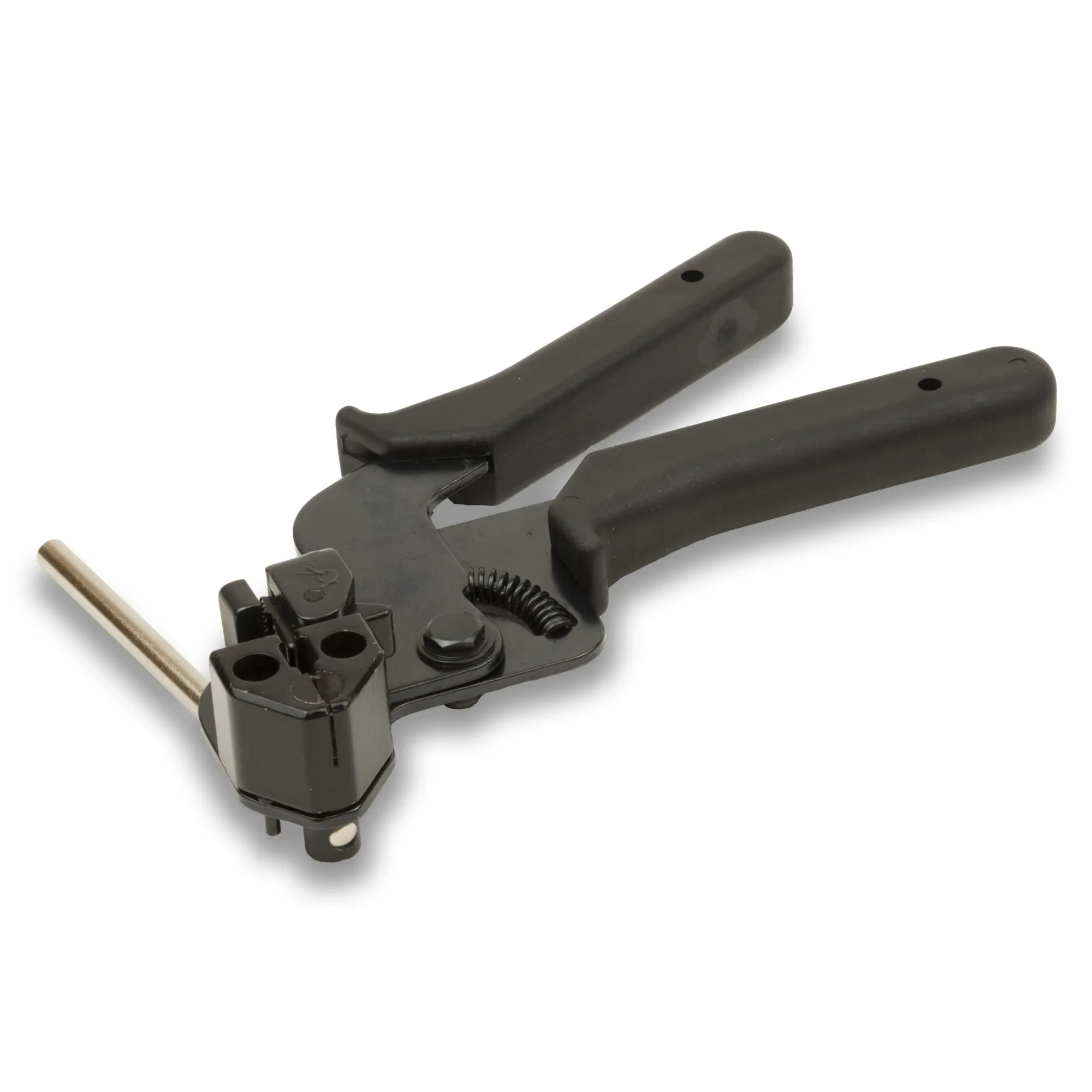 Das Werkzeug 19-ST310 eignet sich, um Metallbänder am Außenmantel der Kabels zu fixieren und festzuziehen. Der überstehende Rest des Metallbandes kann mit Hilfe des Werkzeugs weggeschnitten werden.