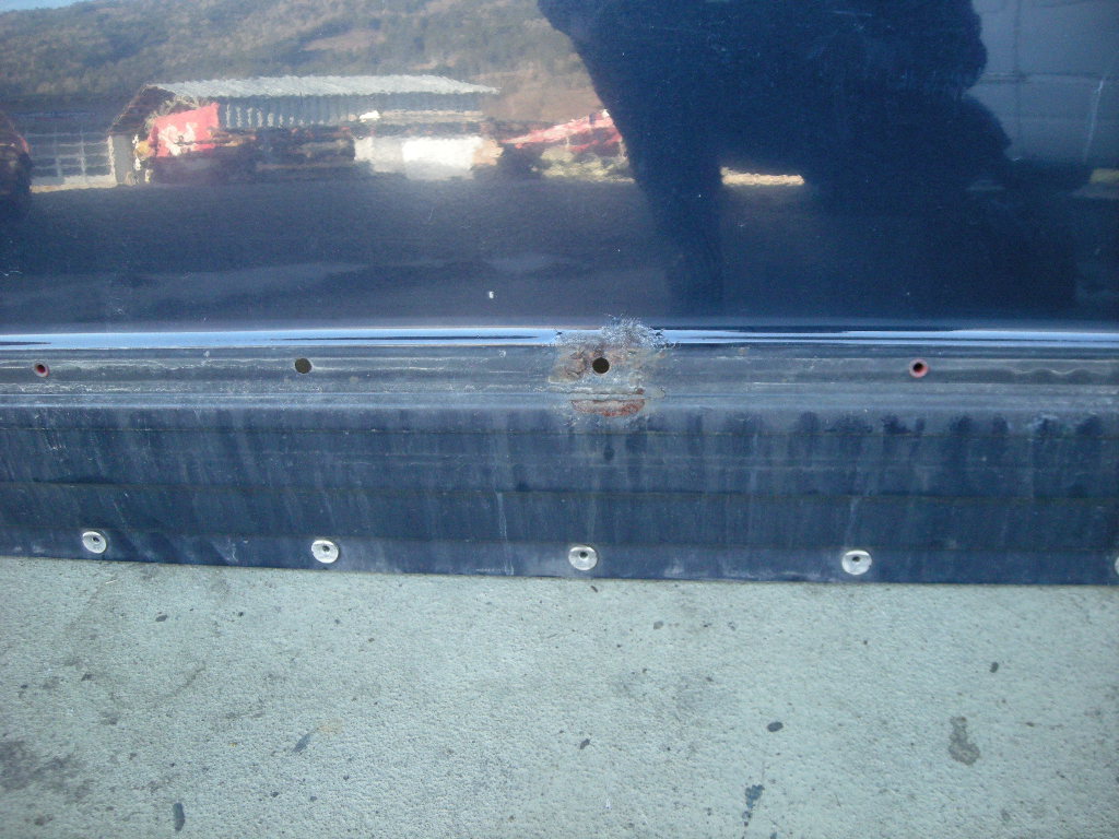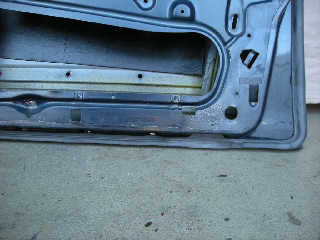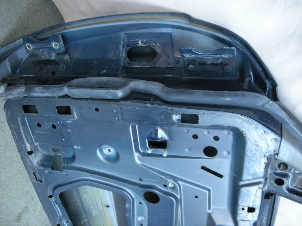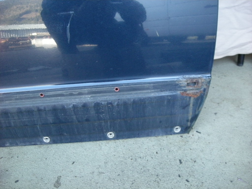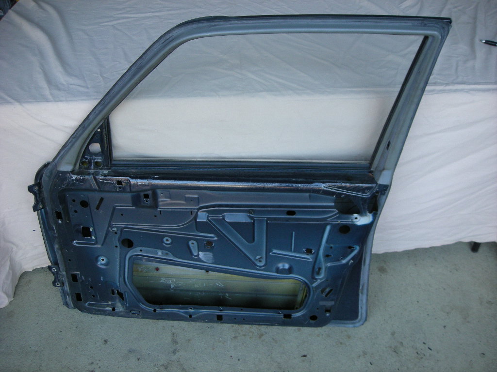Gebrauchte Rohbau Türe vorne rechts, inkl. Glas und Fensterleiste, rostfrei bis auf zwei Stellen (bei den Löchern für die Halteklammern des Flankenschutzes), sehr gute Türdichtung.