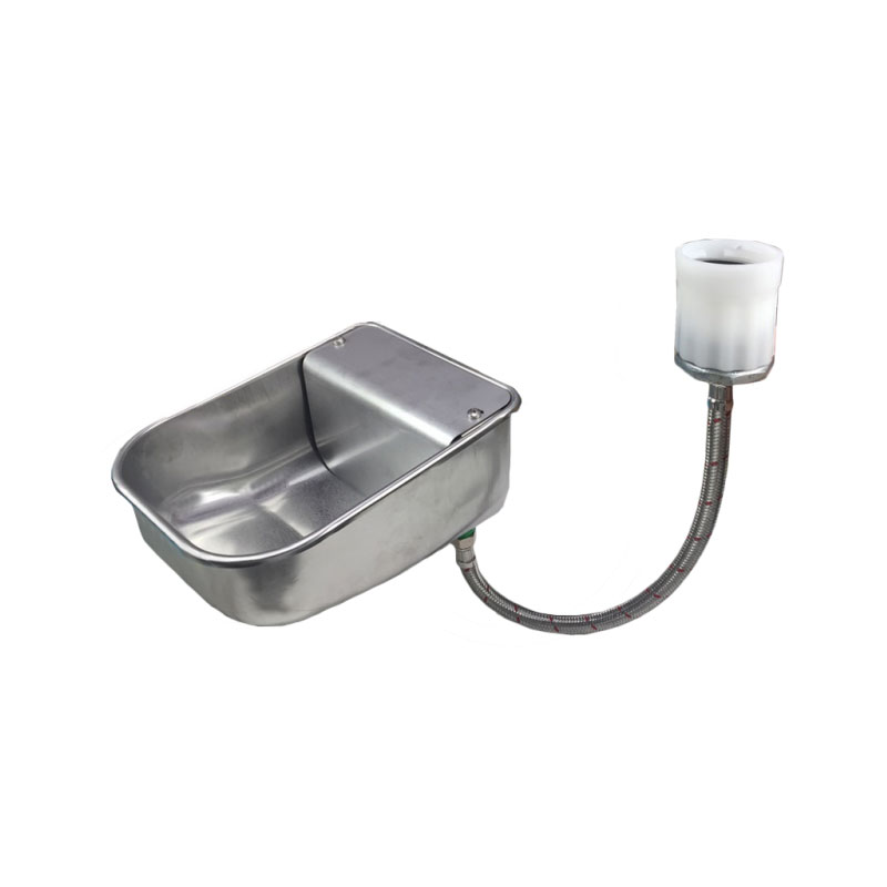 Hochwertige Viehtränke SB 1302 WN aus Edelstahl mit einem Schwimmerventil und einem Anschluss für IBC-Tanks, ohne scharfe Kanten, inklusive Befestigungsmaterial. Vereinfachte Reinigung durch herausnehmbaren Kunststoffstopfen in der Tränkeschale. Geeignet für Rinder.